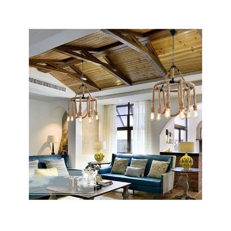 Lampadario Circolare Dal Design Rustico Con Pendenti Di Corda In Canapa E Metallo Perfetto Per Arredare Casa Con Originalità. Dotato Di 6 Portalampada Con Attacco E27, Perfetto Per Casa, Tavernette, Bar, Pub E Ristoranti.specifiche:attacco E27 (lampadine Non Incluse)potenza Max. Lampadine 6x60walimentazione Ac220vdimensioni: Lunghezza Totale 1500 Mm Circadiametro 600 Mm Circamateriale Canapa Con Catene In Metallo