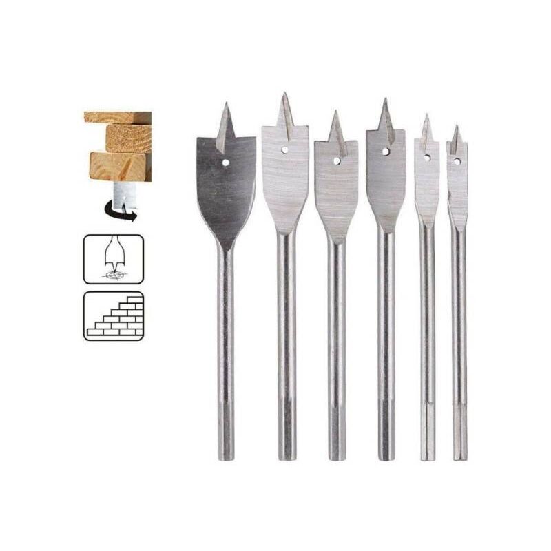Set 6 Mecchie a Testa Piatte per Legno con Codolo Esagonale - Kit di Punte Fresatrici per TrapanoLe Mecchie a Testa Piatte per Legno 6 Pezzi 92087 sono l'elemento essenziale per ogni appassionato del fai da te e professionista del settore. Questo set di punte frese per trapano è progettato per offrire prestazioni ottimali e risultati precisi su una vasta gamma di progetti di lavorazione del legno.Caratteristiche Principali:Set 6 punte a testa piatta: Questo kit include sei diverse dimensioni di punte a testa piatta, permettendoti di scegliere la dimensione più adatta alle tue esigenze specifiche.Codolo esagonale: Le punte sono dotate di un robusto codolo esagonale che garantisce una perfetta aderenza e stabilità durante l'utilizzo con il trapano, riducendo al minimo il rischio di scivolamenti o rotture.Adatte per legno: Progettate appositamente per il legno, queste punte offrono una perforazione precisa e pulita senza scheggiature o danni al materiale, garantendo risultati