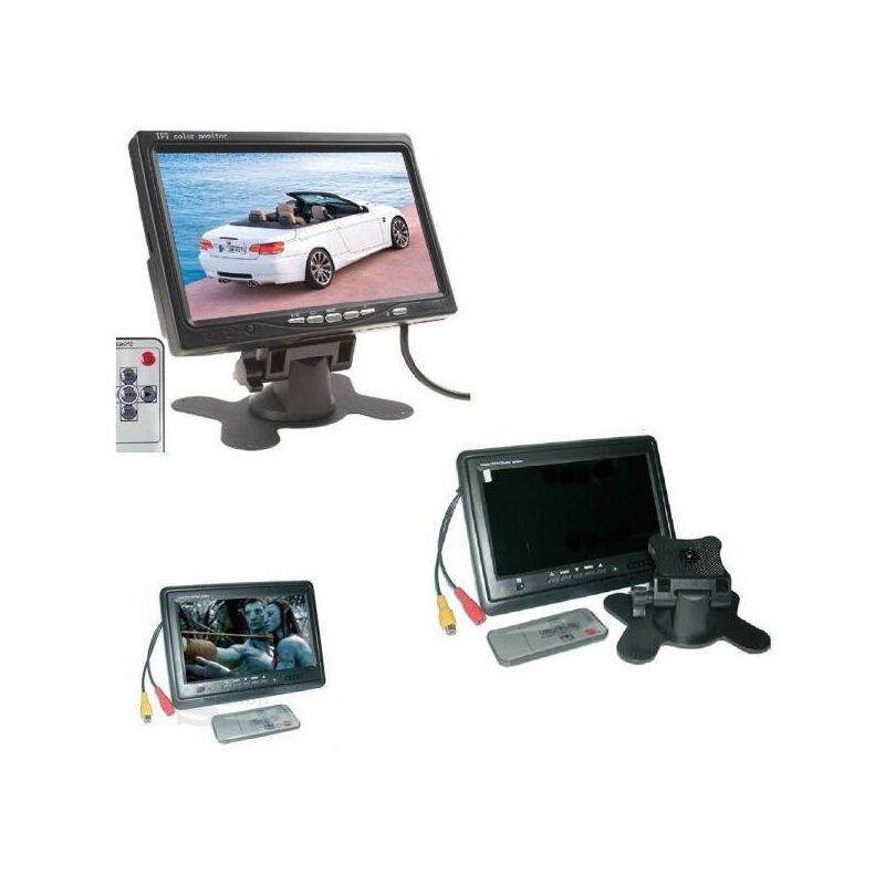 MONITOR LCD 7 TFT TV AUTO CAMPER POGGIATESTA A COLORI BASE REGOLABILE STANDPossiamo utilizzare questo monitor con una camera per retromarcia o come monitor per poggiatesta. Il mini monitor oltre a poterlo montare nel poggiatesta può essere montato sulla basetta in dotazione ad inclinazione regolabile che potrete piazzare su una parete, sul tavolo, oppure nell'auto con la base adesiva molto resistente (inclusa nella confezione). Base d'appoggio snodata ed adesiva per posizionarlo anche sul cruscotto e regolarlo. Dotato di ottima risoluzione, 480x234 PIXEL, un ingresso video V1, visuale 16: 9, telecomando, screen saver di colore blu quando non è attivo il segnale video e menu multilingue.Caratteristiche tecniche: Immagine: 16: 9 LCD TFT: 7 Potenza: 7W Alimentazione: DC 12V DC 220V PAL/NTSC Risoluzione video: 800x480 / 480x234 Ingresso solo video Risoluzione: 240 (H) x RGB x 320 (W) 230400 pixels Dimensioni: 18,5 x 13,5 x 3 cm. Funzione: Rear viewContenuto della Confezione: 1 Monitor