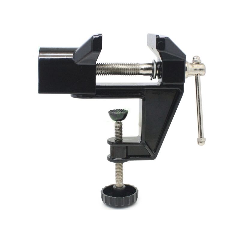Comoda morsa da banco con un'apertura massima di 50mm. Morsa da banco con base fissa per piccoli lavori domestici o anche per officine professionali per bloccare piccoli oggetti durante la loro lavorazione. Caratteristiche tecniche:Morsa da banco con base fissaApertura max morsa: 46mmApertura max staffa morsetto: 31mmLeggera e comodapeso 450gMateriale: lega di alluminioDimensioni piegato: circa 146X120X57mm La confezione contiene:Nr. 1 Morsa da banco