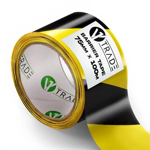 V1 Trade Nastro di bloccaggio, giallo, nero, 75 mm x 100 m, nastro di avvertimento largamente visibile, nastro di segnalazione per segnare il cantiere, resistente ed estensibile