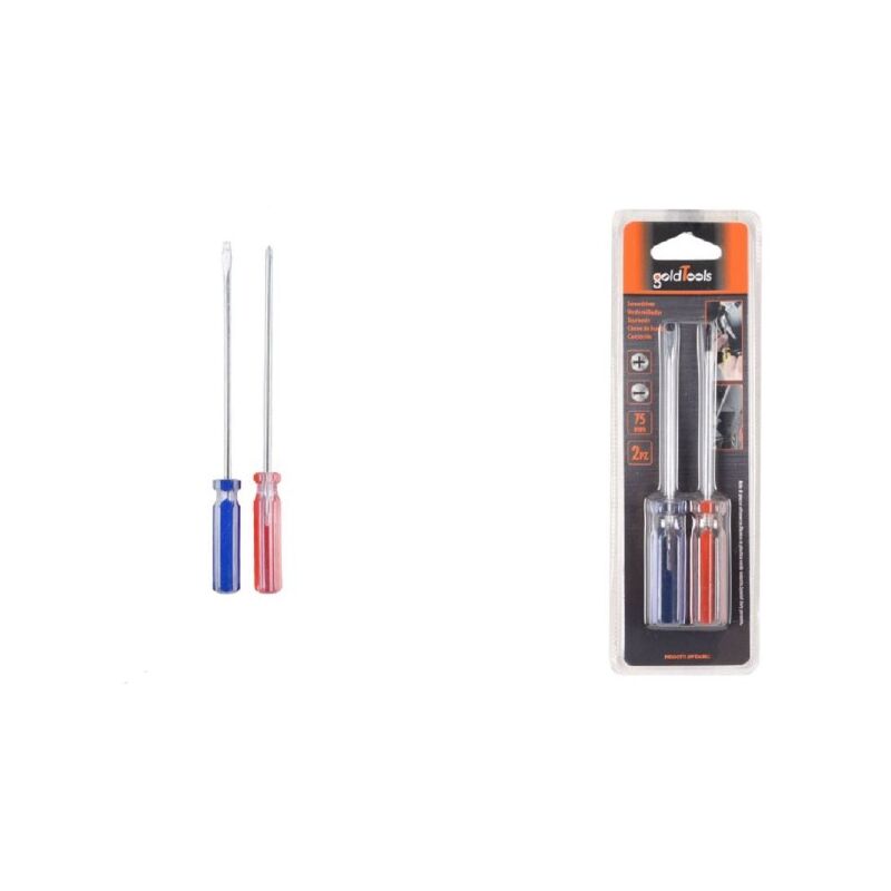Set 2 Pezzi Cacciavite a Taglio e a Stella 75mm con Manico Cristallo 3 - 91895Se stai cercando cacciaviti di alta qualità per le tue esigenze di lavoro o fai-da-te, il nostro Set 2 Pezzi Cacciavite è la scelta ideale. Progettati per offrire prestazioni superiori, questi cacciaviti sono uno strumento essenziale per ogni cassetta degli attrezzi.Caratteristiche Principali:Versatilità: Il set include due cacciaviti fondamentali - uno a stella e uno a taglio. Questa varietà consente di affrontare una vasta gamma di compiti, dal serraggio delle viti a stella alla manipolazione delle viti a taglio.Dimensioni Ottimali: Con una lunghezza di 75mm, questi cacciaviti offrono la dimensione perfetta per una maneggevolezza eccellente. La lunghezza equilibrata consente un controllo preciso senza sacrificare la potenza.Materiali Premium: I nostri cacciaviti sono realizzati con materiali di alta qualità per garantire resistenza e durata nel tempo. Il manico in cristallo offre una presa comoda e sicura