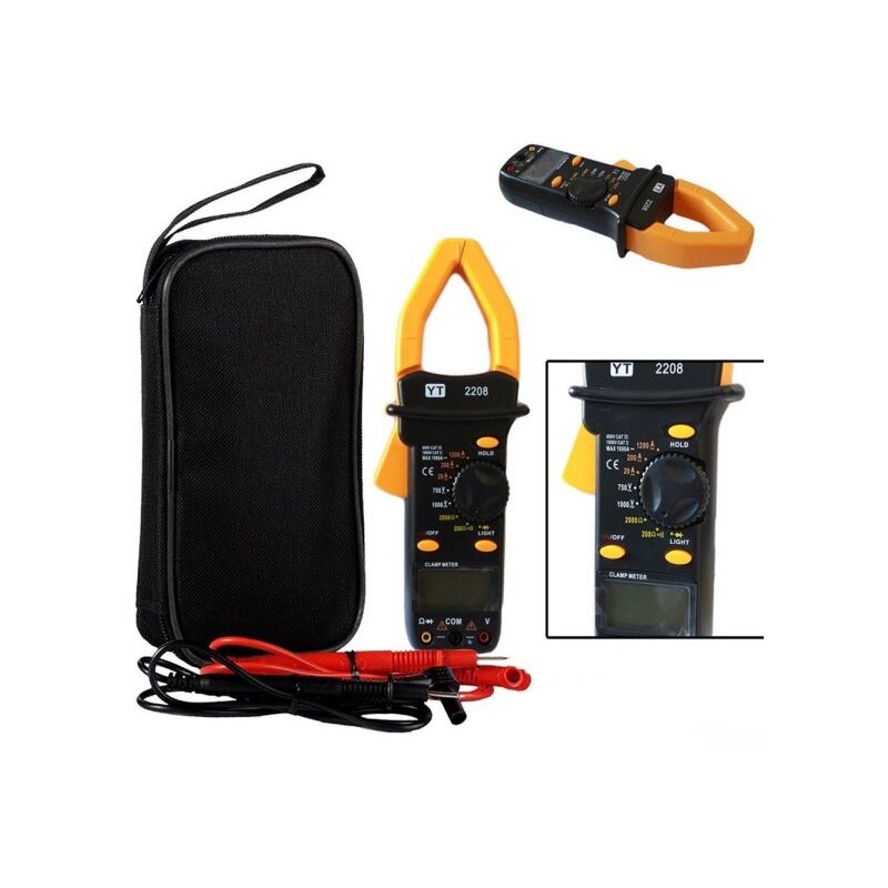 Multimetro Pinza Amperometrica Test Tester Digitale Con Puntali Yt-2208pinza Amperometrica Professionale, Per Qualsiasi Tipo Di Lavoro Di Manutenzione Elettrica, Domestica O Industriale. Misurazioni Di Tensione Alternata, Di Resistenza, Diodi, Transistor E Anche Per La Prova Di Continuità. Ideale Per Laboratori E Test Scolastici E Professionali. Dotato Di Display Lcd E Funzione Data-hold. Comoda Sacca Portatile, Per Tenerlo Sempre Riposto E Portarlo Con Te.caratteristiche Specifiche E Tecniche: Range Di Misura Selezionabili Con Commutatore Rotativo Alimentazione Tramite Pila 9v Comoda Sacca Per Il Trasporto Display Lcd Funzione Data-holdcontenuto Della Confezione: N°1 Pinza N°2 Puntali N°1 Sacca Per Il Trasporto N°1 Manuale D'uso In Inglese N°1 Pila 9v