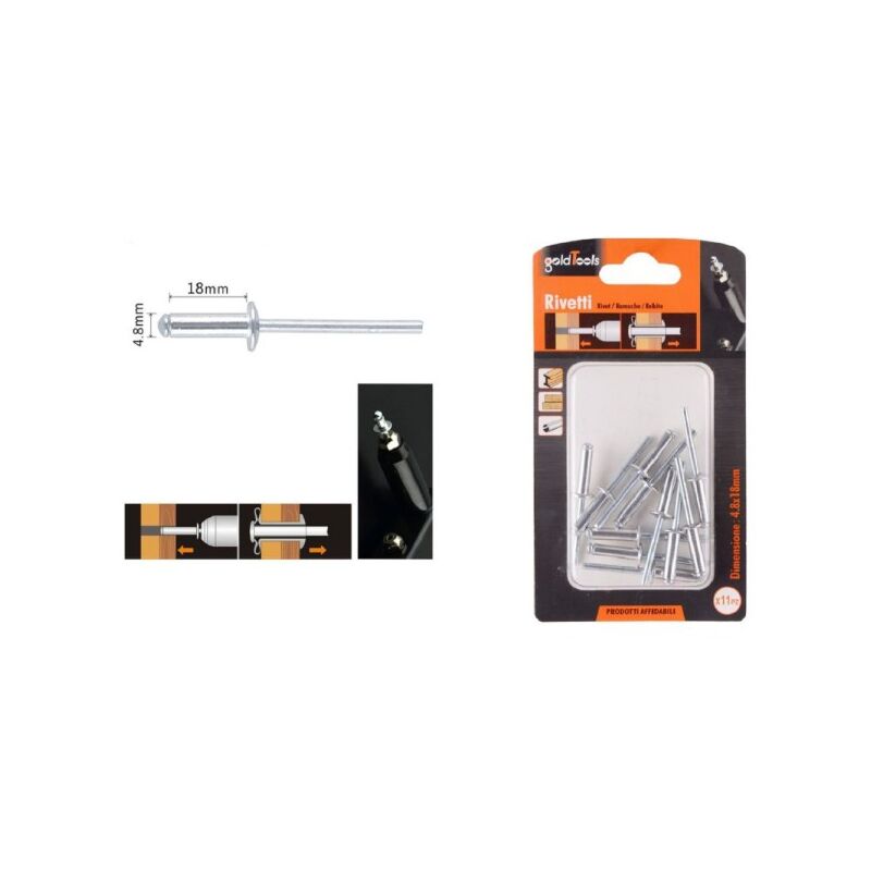 Set 11pz Rivetti Rivetto 4.8x18mm - Accessori Bricolage Ferramenta Fai da Te 90823Il nostro Set 11pz Rivetti è la soluzione ideale per chi cerca accessori di alta qualità nel campo del bricolage e della ferramenta fai da te. Con dimensioni precise di 4.8x18mm, questi rivetti offrono prestazioni eccezionali in ogni progetto.Caratteristiche Principali:Quantità: Il set include 11 pezzi di rivetti, sufficienti per affrontare una vasta gamma di progetti.Dimensioni Precise: Ogni rivetto misura 4.8x18mm, garantendo aderenza sicura e stabilità.Materiali di Qualità: Realizzati con materiali robusti, i rivetti assicurano durata nel tempo e resistenza alle sollecitazioni.Versatilità: Adatti per progetti di bricolage, ferramenta, e lavori fai da te, offrono un'ampia applicabilità.Contenuto della Confezione:11x Rivetti 4.8x18mmAggiungi il nostro Set 11pz Rivetti al tuo kit di utensili per godere di prestazioni affidabili e risultati impeccabili in ogni tua creazione.Affronta i tuoi progetti con