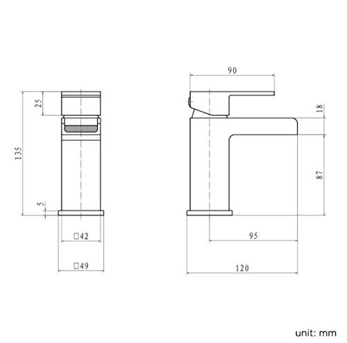 Trade In Post - Rubinetto miscelatore da bagno per lavabo, a cascata, quadrato, cromato, monoblocco