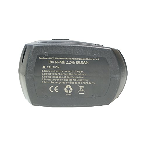 Trade-Shop - Batteria NI-Mh ad alte prestazioni, 18 V, 2200 mAh, 39,6 Wh, sostituisce Hilti SFB180 SFB185 per Hilti SF180 SF180-A SF180A SFH181 SFH181-A SFH181A SF4000 SF4000-A SF4A SF4 SFL18 SFL-18