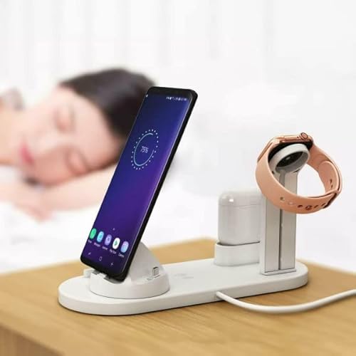 Trade Shop - STAZIONE RICARICA WIRELESS 4 IN 1 QI AIR PODS IPHONE COMPATIBILE MICRO USB TYPE C