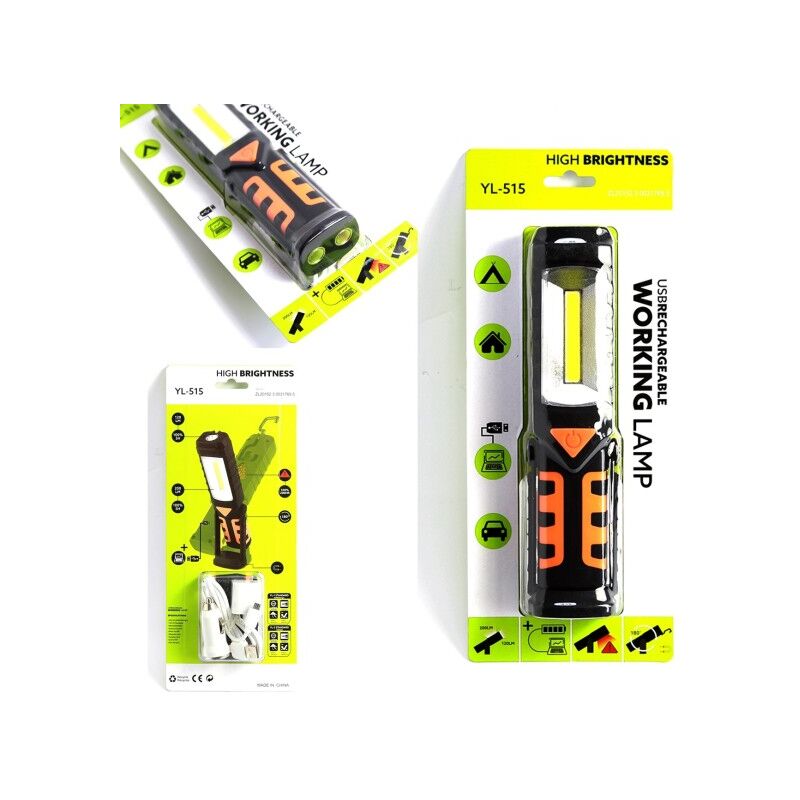 Torcia Portatile Con 1 Strip Led Cob E 1 Led Superiore Molto Potenti E Molto Luminosa In Caso Di Scarsa Luminosita'.base Orientabile Magnetica E Con Pratico Gancio Per Appenderla. Ideale Per Casa Campeggio E Lavoro. Puo' Essere Utilizzata Come Lampada Da Lavoro A Mani Libere O Come Lampada Da Lettura, Grazie Alla Base Orientabile Magnetica Ed Al Pratico Gancio A Scomparsa. Caratteristiche:alimentazione: Batteria Interna Ricaricabile Via Usbdotata Di Alto Rendimento, Luce Biancaper L'illuminazione Di Profondita'per Uso Interno E Soprattutto Esterno.l'utilizzo Dei Led Permette Di Ottenere Elevatissime Prestazioni In Termini Di Luminosita' E Durata.lumen Strip Led Cob: 200lmlumen Led Superiore: 120lmmodalita' Di Illuminazione: 2 Modalita'contenuto Della Confezionenr. 1 Torcia Yl-515nr. 1 Cavo Usb Di Ricaricanr. 1 Adattatore Di Ricarica Domesticanr. 1 Adattatore Di Ricarica Auto Accendisigari.