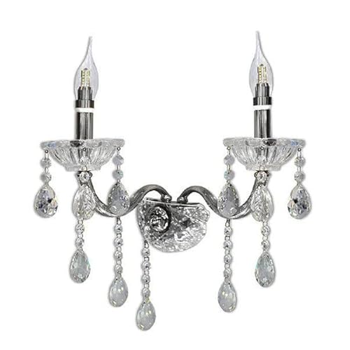 TrAdE Shop Traesio - Applique CANDELABRO Gocce Pendenti Cristallo Acrilico 2 Bracci Attacco E14 E35-31127 - Argento