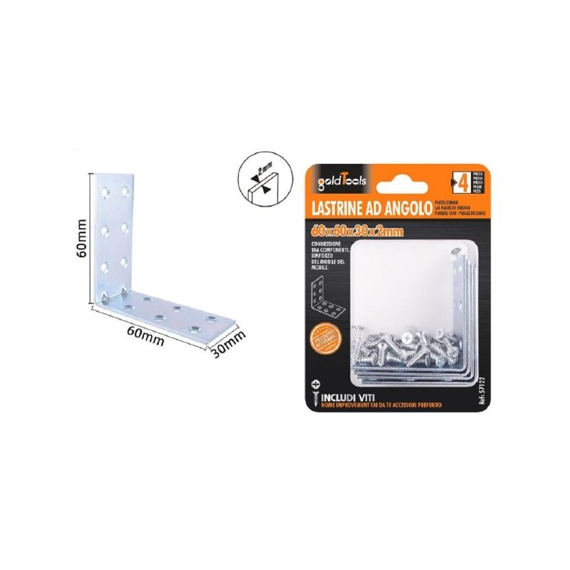 Arricchisci il tuo toolkit con le nostre Lastrine ad angolo 60x60x30x2mm, un elemento chiave per qualsiasi operazione di montaggio e riparazione di mobili. Progettate per assicurare stabilità e resistenza, queste lastrine angolari rappresentano la soluzione ideale per chi cerca efficienza e affidabilità in ogni tipo di progetto, dai più semplici ai più complessi.Caratteristiche Principali:Robustezza e durabilità: Realizzate in materiale resistente per garantire la massima stabilità ai tuoi mobili.Facilità di installazione: Grazie ai 12 fori per il fissaggio, l'installazione è semplice e alla portata di tutti.Versatilità: Ideali per il fissaggio di mensole, ripiani o per il rinforzo di sedie e mobili. Perfette anche per utilizzi hobbystici.Confezione completa: Ogni set include 4 lastrine, permettendoti di completare diversi progetti senza la necessità di acquisti aggiuntivi.Domande Frequenti:Cosa include la confezione? La confezione include 4 pezzi di Lastrina ad angolo 60x60x30x2mm