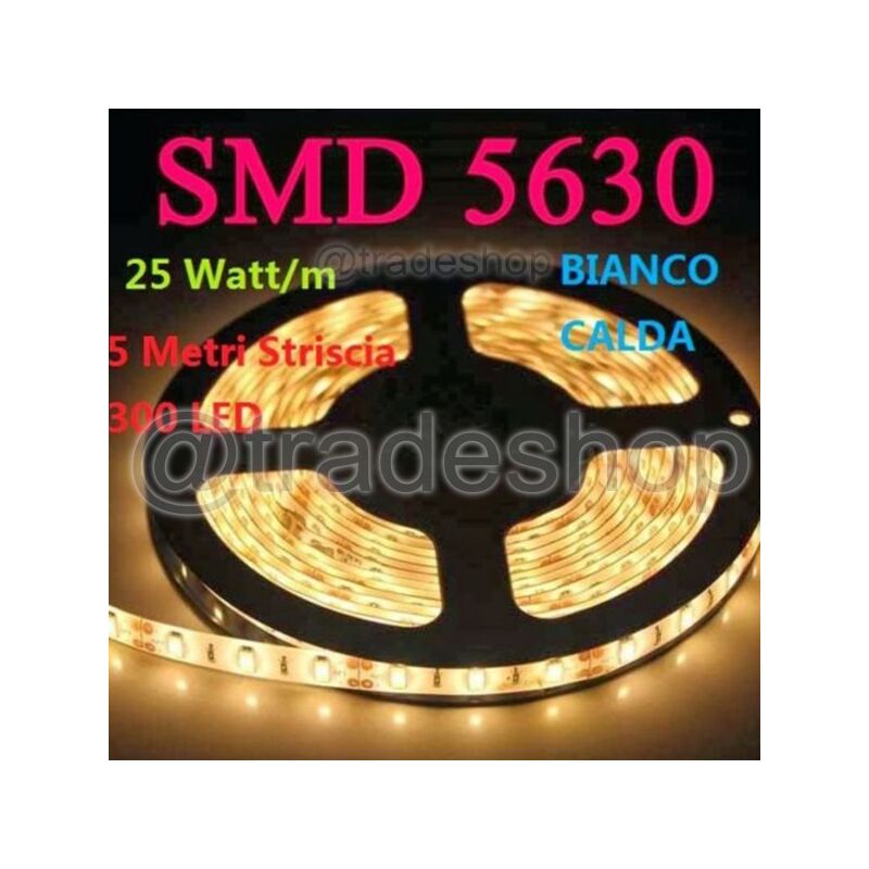 Bobina Striscia 300 Led 5630 Impermeabile 5 Metri 5m 12v Luce Bianco Caldo Casa Strip Attenzione Se Cercate Una Bobina Led Ultra Luminosa Siete Entrati Nell'inserzione Giusta, Ultima Novita' Nel Campo Led, Modello 5630, I Piu' Luminosi Al Mondo !!!! Lunghezza 5 Metri X 14.4w Flessibile Larghezza 11mm Spessore Circa 2,90mm Angolazione Della Luce Circa 120° Impermeabile Waterproof Per Uso Interno Esterno Potenza 25w (5w Per Metro)potenza Lumen Circa 10 Lumen A Led Bobina Di 5 Metri A Led Di Altissima Qualita' E Durata Ogni Metro Ha 60 Led Smd Modello 5630 Ultraluminosi Totale Led X 5 Metri 300 ! Colore Led: Bianco Caldo ( Come In Foto) Tagliabile Ogni 3 Led Sull'apposito Segno