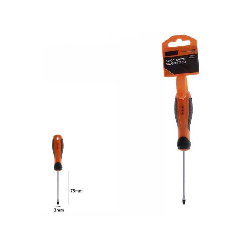 CACCIAVITE GIRAVITE MAGNETICO PUNTA A TAGLIO 3X75MM IMPUGNATURA ERGONOMICA 07423Se stai cercando un cacciavite di alta qualità per soddisfare le tue esigenze di lavoro, il nostro Cacciavite Giravite Magnetico con Punta a Taglio è la scelta ideale. Progettato per offrire prestazioni ottimali e affidabilità duratura, questo strumento diventerà presto un alleato indispensabile nella tua attività quotidiana.Caratteristiche Principali:Misura: La punta a taglio di 3x75mm garantisce la versatilità necessaria per affrontare una varietà di compiti, dal montaggio di mobili alla riparazione di apparecchi elettronici.Magnetico: Dotato di un meccanismo magnetico integrato, questo cacciavite assicura una presa sicura sulla punta, migliorando la precisione e facilitando il lavoro.Impugnatura Ergonomica: Progettata con cura per garantire il massimo comfort durante l'uso prolungato, l'impugnatura ergonomica riduce l'affaticamento delle mani, consentendoti di lavorare in modo più efficiente.Contenuto