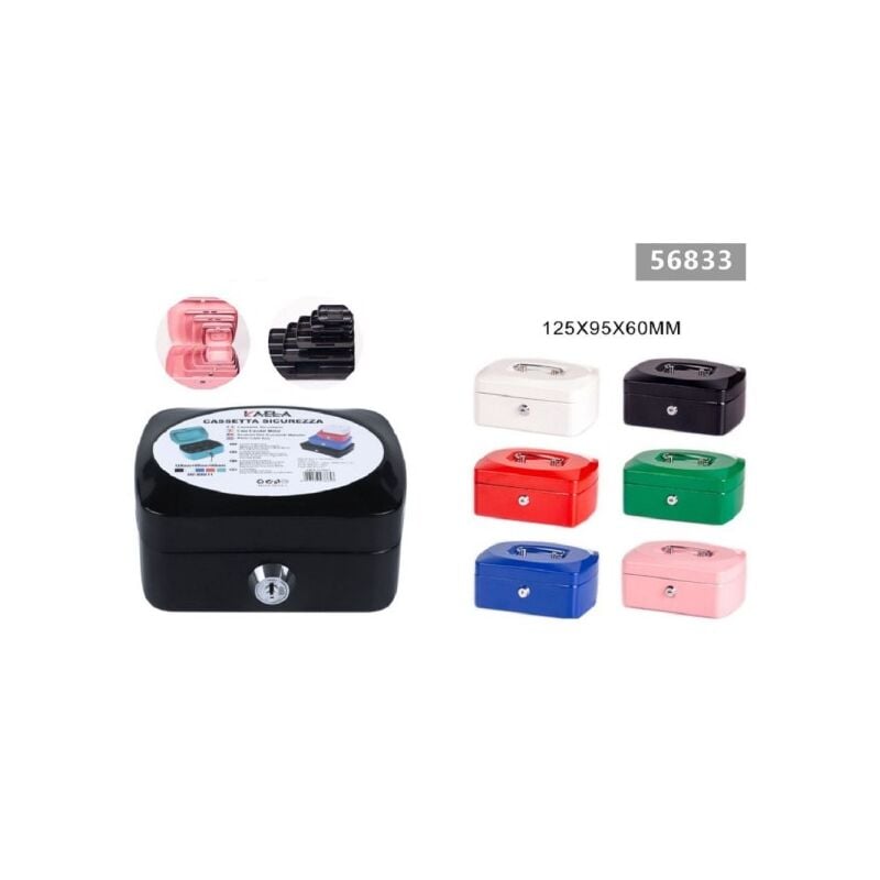Cassetta portavalori con serratura Cassetta portavalori con vassoio estraibile con divisorio portamonete utile per poter tenere sempre in ordine le monete e tenere nascosto sotto allo scomparto gli oggetti di valore. Dispone di una doppia chiave per aprire la cassaforte e di un manico per un trasporto pratico.Scomparto interno estraibile con divisorio portamoneteDoppia chiave e manico per un facile trasportoDimensione: 125x95x60 mmIl colore può variare in base alla disponibilità del magazzino.