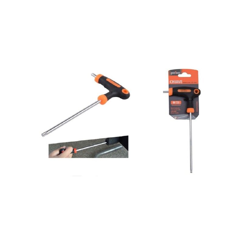 Chiave con impugnatura di manovra. Realizzate in acciaio cromo vanadio queste brugole sono perfette anche per i professionisti che necessitano di una qualità elevata. L'accurato proporzionamento dell'impugnatura ergonomica, in funzione della dimensione della chiave, garantisce serraggi elevati anche in spazi ristretti. Chiavi a T con punta a stella e impugnatura ergonomica.È dotato di forma a TMisure: 25x100mmMateriale: Acciaio cromo vanadioFinitura: Cromata