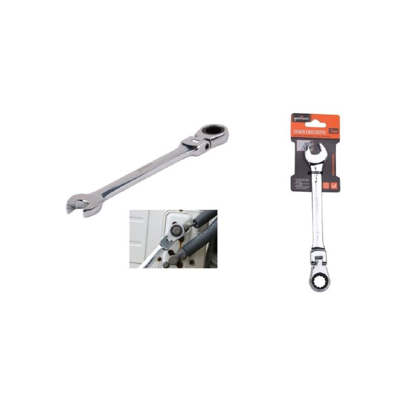 Chiave a cricchetto combinata 15mm Testa Pieghevole Cromo Vanadio Utensile 91736La chiave a cricchetto combinata è uno strumento versatile e indispensabile per qualsiasi cassetta degli attrezzi. Con una misura di 15 mm, questa chiave è ideale per una vasta gamma di applicazioni, dall'assemblaggio di mobili alla manutenzione dell'automobile.Realizzata in resistente acciaio cromo vanadio, questa chiave offre una durata eccezionale e una robustezza che la rende adatta anche ai lavori più impegnativi. La sua testa fissa e poligonale snodata consente di raggiungere angoli difficili e di lavorare in spazi ristretti con facilità, garantendo una maggiore versatilità e praticità.La caratteristica principale di questa chiave è il suo meccanismo a cricchetto, che consente di svitare e avvitare con estrema rapidità e precisione. Questo meccanismo elimina la necessità di rimuovere e riapplicare la chiave ad ogni movimento, consentendo di eseguire lavori in modo più efficiente e con uno sforzo