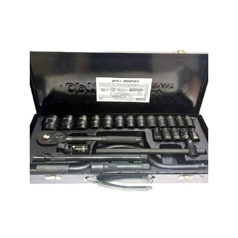 Set chiavi a bussola 24 pezzi con cricchetto reversibile 1/2'' prolunghe ValigiaSet 24PZ chiavi a bussola da 10 a 32mm 1/2 con cricchetto reversibile prolunghe. Set composta da 24 pezzi tra bussole, cricchetto e varie prolunghe con attacco da 1/2.ContenutoCricchetto reversibile da 25cmBussole esagonali: 10, 11, 12, 13, 14, 15, 16, 17, 18, 19, 20, 21, 22, 23, 24, 27, 30 e 32MM1 Prolunga da 125mm1 Prolunga da 250mmManico curvo da 370mmSnodo
