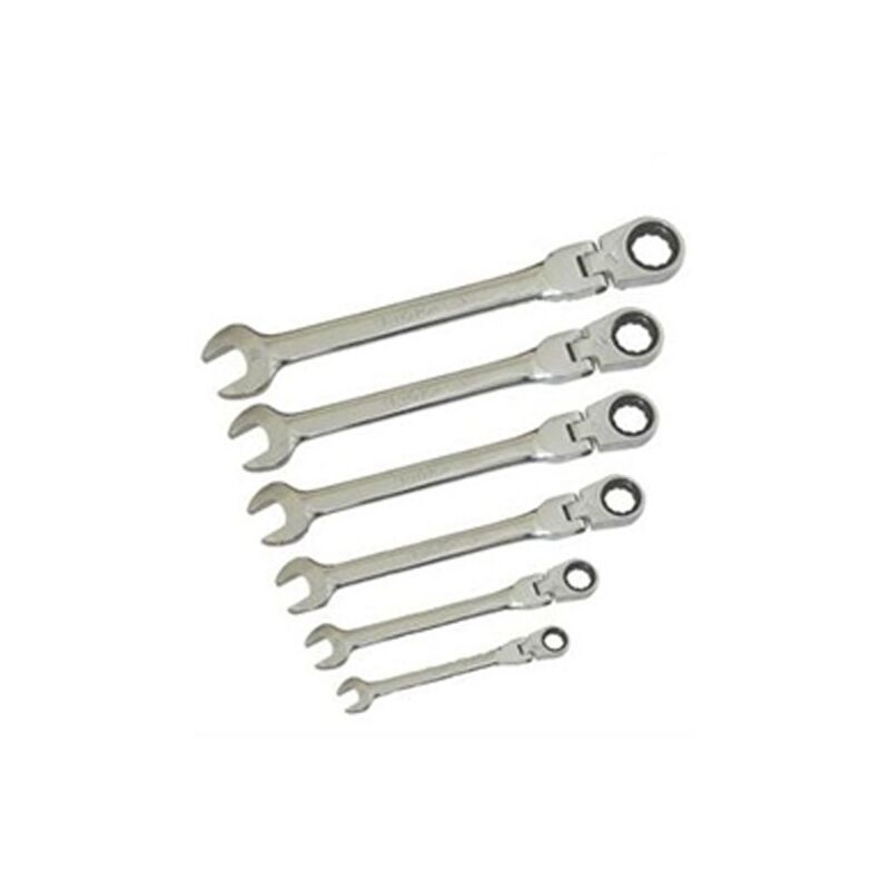 Chiavi combinate a cricchetto con snodo set 6pz in acciaio cromo vanadioLe chiavi combinate a cricchetto con snodo sono uno strumento essenziale per qualsiasi officina o garage. Questo set di 6 pezzi offre una soluzione completa per una vasta gamma di applicazioni. Realizzate in acciaio cromo vanadio, queste chiavi sono robuste e durature, ideali per un uso quotidiano.Caratteristiche principali:Cricchetto e snodo: Grazie al cricchetto e allo snodo integrati, queste chiavi offrono una maggiore flessibilità e facilità d'uso in spazi ristretti o in posizioni difficili.Acciaio cromo vanadio: La costruzione in acciaio cromo vanadio assicura resistenza e durabilità, garantendo che le chiavi possano affrontare anche i lavori più impegnativi.Cromatura lucida: Le chiavi sono cromate lucide, che non solo offrono una protezione contro la corrosione, ma facilitano anche la pulizia e la manutenzione.Contenuto della confezione:Chiave da 8 mmChiave da 10 mmChiave da 13 mmChiave da 14 mmChiave da 17