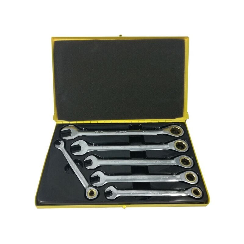 KIT CHIAVI COMBINATE FISSE E A CRICCHETTO HELVED DA 6 PZ CROMO VANADIO HLD10122Il Kit Chiavi Combinate Fisse e a Cricchetto Helved da 6 Pezzi offre un'efficiente soluzione per le esigenze di serraggio più comuni. Realizzato in acciaio cromo vanadium, questo set di chiavi è rinomato per la sua robustezza e durabilità. Con un design versatile che include sia chiavi fisse che chiavi a cricchetto, è ideale per una vasta gamma di applicazioni.Caratteristiche Principali:Materiali di Alta Qualità: Le chiavi sono realizzate in acciaio cromo vanadium, un materiale noto per la sua resistenza e durata nel tempo. La finitura lucidata conferisce loro un aspetto professionale e contribuisce a prevenire la corrosione.Versatilità: Ogni chiave combina due funzioni in una, offrendo la praticità di una chiave fissa su un lato e la versatilità di una chiave a cricchetto sull'altro. Questo design multifunzionale consente di affrontare una varietà di compiti di serraggio con facilità ed efficienza.Custodia