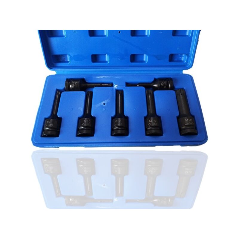 Nuovissimo Set Di 7 Adattatori Per Bussole Ad Impatto/percussione In Acciaio Di Tipo Torx Con Attacco Tipo M. Ideale Da Utilizzare Con Utensili Pneumatici Ed Elettrici Con Attacco Bussole Di Tipo 1/2alta Resistenzaideale Per Meccanici, Elettrauti, Gommisti E Altri Settori, Ma Molto Utili Anche Per Gli Amanti Del Fai Da Te.misure Dei Riduttorim5m6m8m10m12m14m18il Tutto In Una Pratica E Comoda Valigetta Per Il Trasporto In Plastica Rigida.