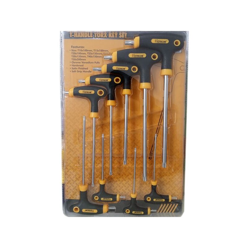 Nuovissimo set di chiavini torx con foro modello a T a due teste. Ideali per il campo professionale che per il fai da te. I chiavini sono realizzati in acciaio cromo vanadio per una lunga resistenza e con una pratica impugnatura Ideale per professionisti ma anche per amanti del fai da te. Realizzati in lega di acciaio cromo vanadio, molto resistenteCaratteristiche tecnicheSet chiavini Tox a T a due testeMateriale: Acciaio cromo vanadio satinatoChiavini da: T10x100/T15x100/T20x100/T25x150/T27x150/T30x150/T40x150/T45x200/T50x200 mmIdeale per professionisti ma anche per amanti del fai da te. Realizzati in lega di acciaio resistente