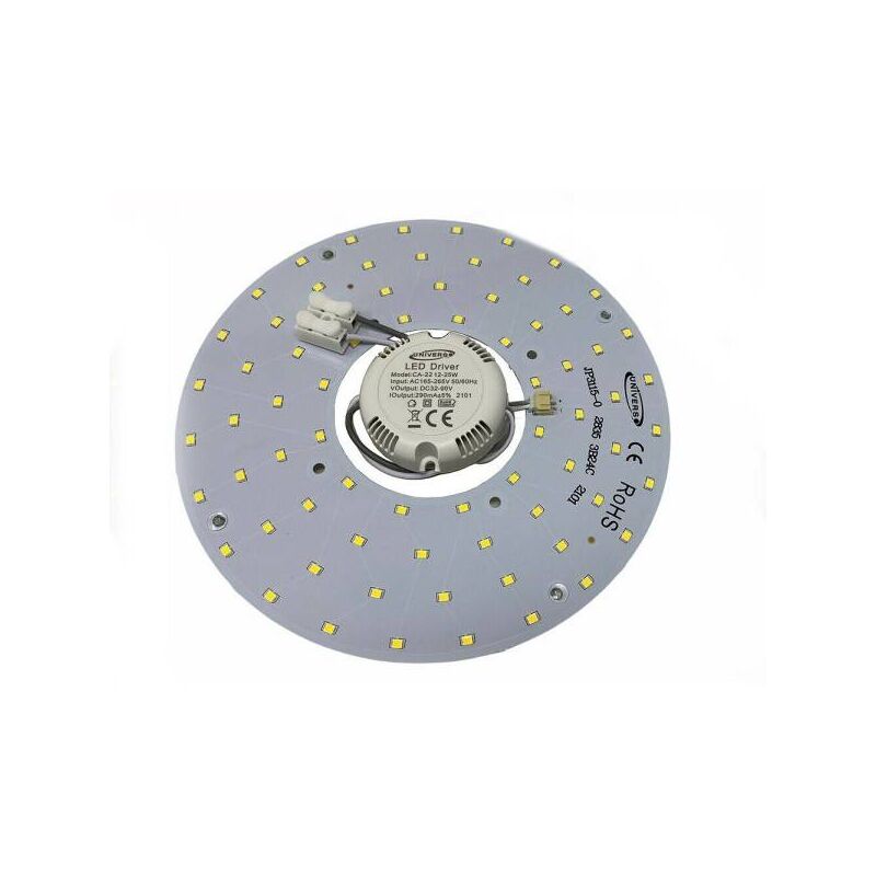 Modulo Led Circolare Ideale Per Modificare Le Tradizionali Plafoniere A Neon. Facile Da Installare, Basta Eliminare Il Vecchio Neon Insieme A Starter E Reattore Ed Inserire Il Modulo Che Si Fissa Perfettamente Alla Base Di Alluminio Della Plafoniera Mediante Dei Supporti Calamitati, Il Driver Dispone Del Biadesivo Sul Retro.potenza 22 Wattflusso Luminoso: 2300lmnumero Di Led 72potenza Singolo Led 0.5walimentazione Ac 220-240v 50hz- Dc 32-90v-cri(ra) >80fascio Luminoso 120°durata 20.000 Oreprotezione Ip20luce Fredda 6500k Calda 3000k Naturale 4000kdimensioni: Diametro 19 Cm Dimensioni Driver: 5.5 X 1.5 Cmmateriale: Alluminio E Plastica