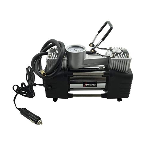 TrAdE Shop Traesio Mini COMPRESSORE Portatile 12 Volt A Doppio Cilindro per Auto Moto + MANOMETRO