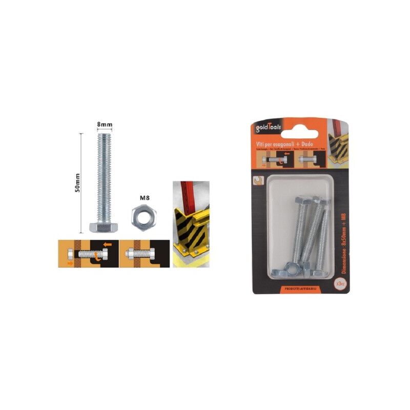SET 3 PZ VITE VITI PER ESTERNO A TESTA ESAGONALI 8X50 MM CON DADI DADO M8 90922Viti per esterno a testa esagonali con dadiCaratteristiche tecniche:Testa esagonaleDimensioni vite: diametro 8 mm x lunghezza 50 mmDimensioni dado: M8Confezione: da 3 pezziLe viti per esterno a testa esagonali con dadi offrono una soluzione robusta e affidabile per una vasta gamma di applicazioni. La loro testa esagonale consente un facile fissaggio e rimozione con la corretta chiave esagonale. Con un diametro di 8 mm e una lunghezza di 50 mm, queste viti sono ideali per progetti che richiedono una tenuta sicura e duratura. Il dado M8 incluso assicura un'installazione sicura e stabile. Confezionate in pratiche confezioni da 3 pezzi, queste viti sono pronte per essere utilizzate immediatamente, offrendo convenienza e versatilità per ogni lavoro.