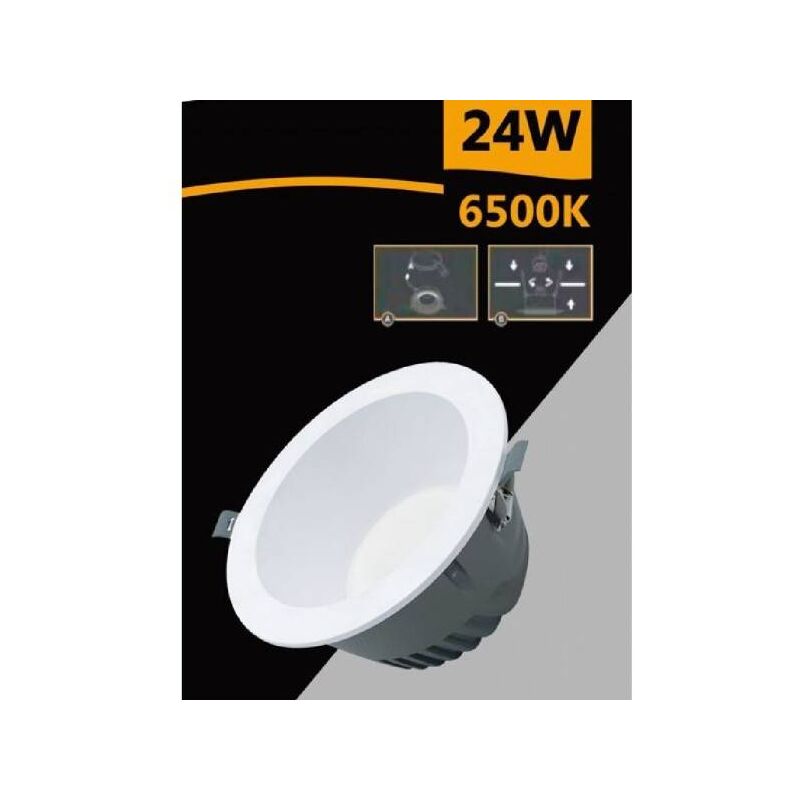 Faretto Led Da Incasso Con Potenza Di 24w. Forma Rotonda In Termoplastica Ed Alluminio Di Colore Bianco. Led Smd Con Fascio Luminoso Di 60° E Flusso Luminoso Di 2400 Lm. La Potenza Di 24w è Equivalente A 240w Di Un Faretto Ad Incandescenza. Questa Lampadina Ad Alta Luminosità, Ha Un Rapporto Di 100 Lm/w. Incluso Driver Già Collegato Al Faretto, Con Cavi A Saldare Per La Connessione All'impianto. La Lampada è Dotata Anche Di Clip Per Il Fissaggio. Elegante E Adatto All'incasso Nei Controsoffitti In Cartongesso O Legno, Può Essere Sostituito In Uffici, Showroom E Sale Conferenze.questo Modello Di Faretto è Disponibile Con 2 Diverse Temperature Colore: Luce Bianca Naturale 4000k E Bianca Fredda 6500k.tipologia Faretto Ledpotenza 24 Wattpotenza Equivalente 240 Watt (lampada Ad Incandescenza)alimentazione Ac 100-240v 50/60hzflusso Luminoso 2400 Lumenfascio Luminoso 60°cri >80pf >0.5grado Di Protezione Ip20copertura Opacamateriale Termoplastica / Alluminiodimensioni ø 165mm X 88mmforo