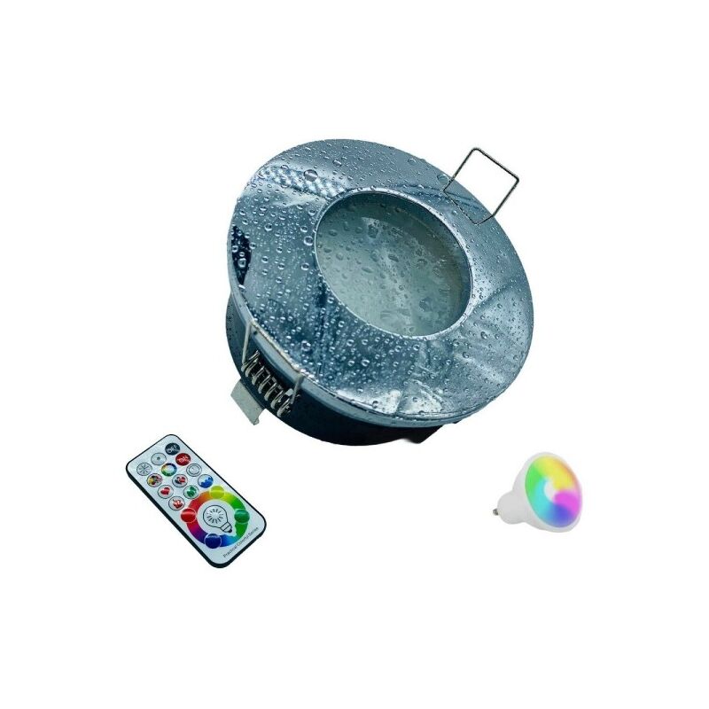 Porta Faretto A Tenuta Stagna Realizzato In Alluminio Pressofuso Verniciato A Polveri Epossidiche Resistente All'acqua Ideale Per Ambienti Umidi. Completo Di Controcassa In Alluminio Ha Un Grado Di Protezione Ip44 Ideale Per Essere Incassato In Box Doccia, E In Tutti Quei Posti Dove C'è Umidità. Il Porta Faretto Può Essere Installato Nel Controsoffitto Tramite Alette Oppure Grazie Alla Controcassa Removibile In Alluminio è Possibile Inserirlo In Soffitti In Muratura. Il Faretto è Munito Di Lampada Led Rgbw Ir Potenza 10w Con Led 5w Rgb +5w Luce Bianca 6000k ( è Possibile Utilizzare Il Faretto Con Luce Bianca Fredda Per Illuminare L'ambiente O Utilizzando La Luce Rgb Per Creare Cromoterapia E Vari Effetti O Giochi Di Luce). La Lampada Ha Memoria Interna E Ricorda Sempre L'ultimo Colore Impostato. Il Faretto è Comandabile Tramite L'interruttore A Muro E Tramite Il Telecomando Per La Gestione Dei Colori - Dimmer Per Aumentare O Diminuire L'intensità Luminosa- Effetti E Giochi Di Luce