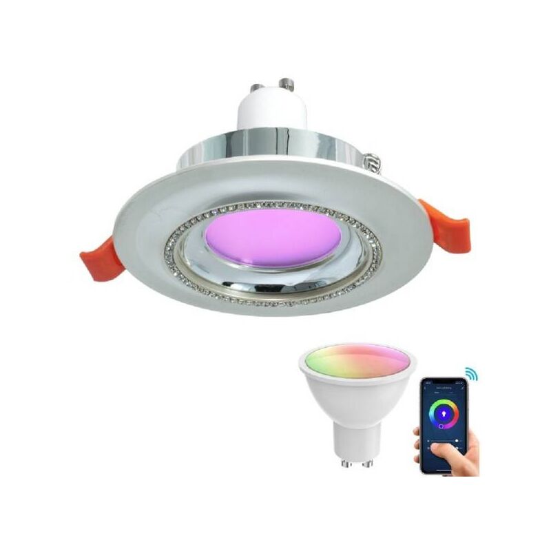 Elegante Faretto Tondo Con Brillantini Dal Design Moderno Disponibile In 2 Colori: Silver E Oro, Completo Di Lampada Led Smart 5w Gu10 Rgb + Cct Dotato Di Alette A Molla Per L'incasso In Controsoffitti Di Cartongesso Realizzato In Alluminio è Ideale Per Dare Un Tocco Di Eleganza Ai Propri Ambienti Interni. Si Adatta A Tutti Gli Ambienti Interni Dallo Stile Moderno. Compatibile Con Tutti I Fori Da 75mm. Diametro Del Faretto: ø 95mm. Completo Di Attacchino Gu10 Per Il Collegamento Della Lampada. La Lampada è Intercambiabile.viene Fornito Completo Di Lampada Gu10 Led Rgb+cct Con Potenza 5w Dotata Di Tecnologia Wifi Per Il Controllo Da Remoto Tramite Smarphone Scaricando L'app smart Life Oppure Utilizzando Gli Assistenti Vocali Amazon Alexa E Google Home. La Lampada è Dotatoa Di Attacco Gu10 Si Alimenta A 230v Ed Ideale Per L'illuminazione Interna In Controsoffitti Di Cartongesso.la Lampada è Intercambiabile In Caso Di Rottura A Differenza Di Prodotti Con Led Integrati. Inoltre La Lampada