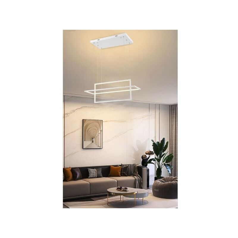Lampadario Con Due Rettangoli Disposti In Modo Contrario, Verniciato Bianco 56w Lunghezza 80cm E Altezza 150cm Il Design Elegante Del Prodotto è Conforme All'estetica Moderna E Crea Un'atmosfera Confortevole Per Decorare La Tua Casa. è L'attrezzatura Perfetta Da Installare In Camera Da Letto, Soggiorno, Cucina, Sala Da Pranzo, Studio, Corridoio, Vano Scala E Ufficio. La Luce è Morbida E Ti Dà Una Sensazione Calda E Piacevole Con 4480lm, La Plafoniera Può Illuminare La Maggior Parte Degli Ambienti. Ridurre Efficacemente I Punti Ciechi E Garantire La Migliore Esperienza Di Illuminazione.tensione Ac 220-240vfrequenza 50/60hzpotenza 56 Wattflusso Luminoso 4480lmfascio Luminoso 240°gradi Kelvin Luce Calda 3000k, Fredda 6500k, Naturale 4000kdimmerabile Nocri/ra 80ip Protezione Ip20materiale Alluminio + Pvc + Ferro Verniciatodimensioni 800x250x1500mmbase 600mmcolore Bianco