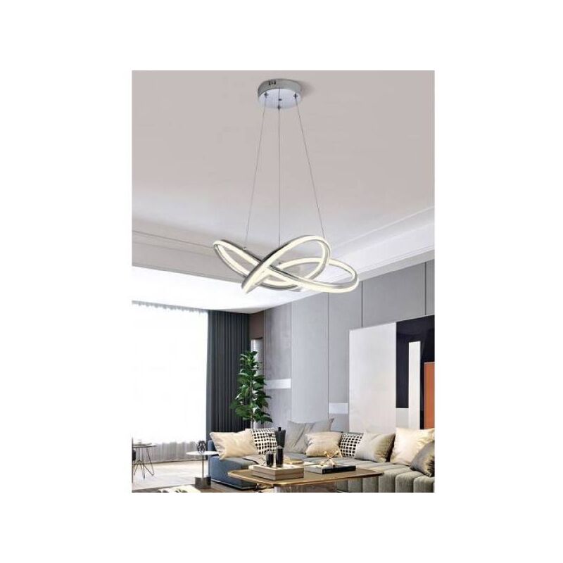 Lampadario Da Soffitto A Led Dal Design Ultramoderno E Dalla Forma Ovale Intrecciata, Perfetto Per Conferire Un Tocco Di Originalità Al Tuo Arredamento. Dispone Di Led Dalla Potenza E Consumo Di 60 Watt Totali Con Emissione Luminosa A 360°tensione D'ingresso Ac220-240v 50/60hzpotenza E Consumo 60 Wattflusso Luminoso 4800lmfascio Luminoso 360°gradi Kelvin Luce Bianca Fredda 6500k, Naturale 4000k, Calda 3000kgrado Di Protezione Ip20dimensioni 1100x500 Mm (altezza Regolabile)base 160x25mmcolore Argento