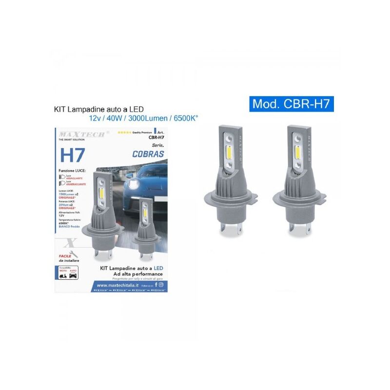 KIT LAMPADINE AUTO A LED AD ALTA PERFORMANCEKit lampade a led h7 6500k. Voltaggio 12v, ideale per auto e moto. Montaggio semplice fai da te. La serie di lampade led rende semplice e velocissimo l'aggiornamento del gruppo fari alla tecnologia led. Piccole e affidabili sono la soluzione perfetta per dare un look accattivante e di stile alla tua auto. Corpo piccolo adattabile a tutte le auto e facile da installare. Ogni lampadina a led emette fino a 1500 lumen di luminosità di luce bianca. E' la scelta migliore per una guida sicura di notte.Dettagli del prodottomodello: H7alimentazione volt: 12vtemperatura kelvin: 6500kcolore luce bianco freddoluminosità: 1500lm x 2facile da installareeccellente luminositàadatto a: auto, mototecnologia ledpotenza 20 watt x 2funzione luce luce abbagliante ed anabbagliante