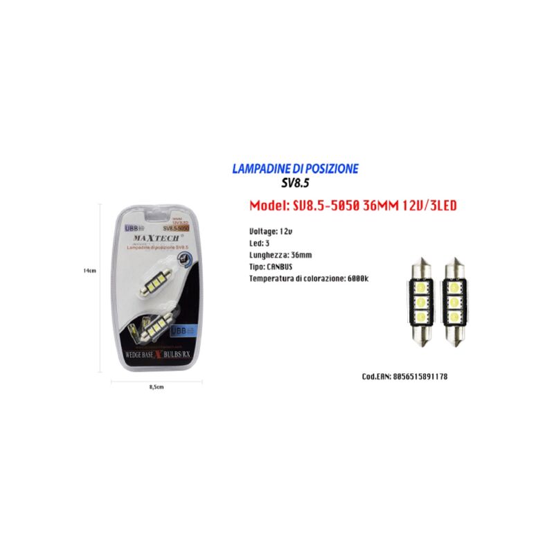 Lampadine Di Posizione Sv8.5-5050 12v 3led 36mm Avvertenze:sul Alcune Vetture Potrebbe Accendersi La Spia Del Cruscotto Anche Con La Versione Canbus. Per Queste Vetture E' Quindi Consigliabile Aggiungere Una Resistenza Supplementare Per Risolvere E Spegnere La Spia Eludendo Il Computer Di Bordo.