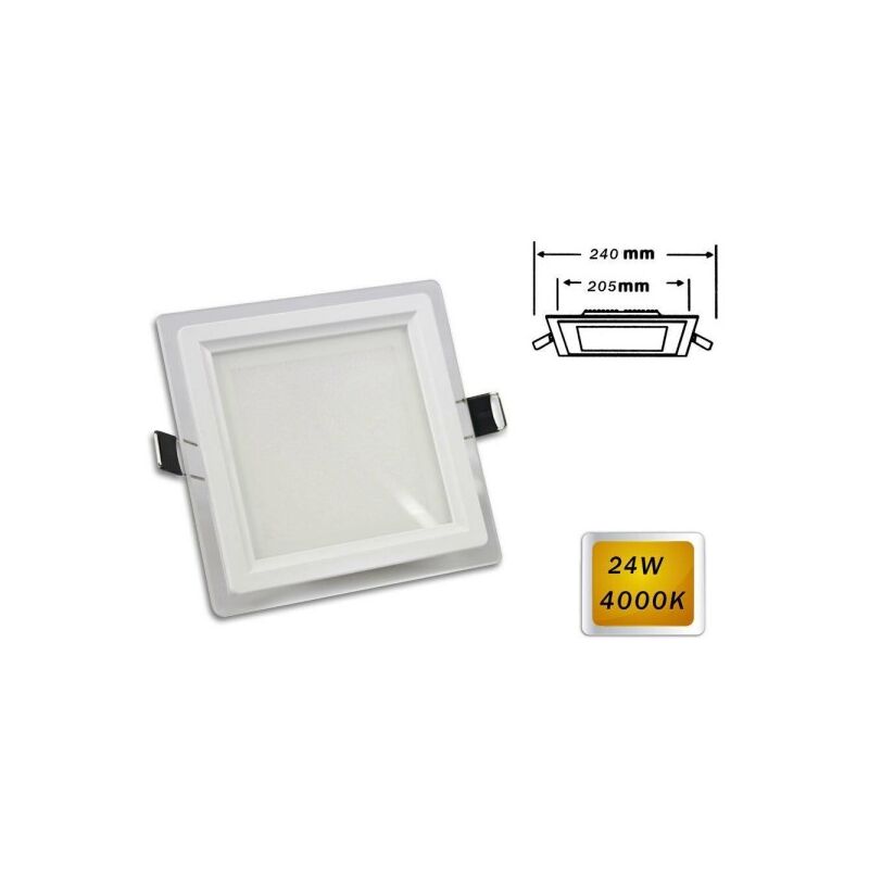 Pannello Led Ad Incasso Completo Di Driver Composto Da Una Struttura Con Cornice In Vetro Trasparente, Per Montaggio A Soffitto. Il Prodotto è Indicato Per Controsoffittature Ma Anche Per Illuminare Garage Sotterranei, Sottopassi, Parcheggi, Uffici, Supermercati Ed In Generale Ampie Superfici Commerciali E Industriali. Completo Di: Led Driver E Molle Per Il Bloccaggio A Soffitto.pannello Led Ad Incasso Completo Di Driver Con Rifiniture Bianche Con Cornice Trasparente In Vetro.consumo E Sorgente Luminosa: 24 Watt Equivalente Ad Incandescenza 240 Wangolo Di Illuminazione: 120 Gradi Circatipo Di Led: Smd 2835intensità Luminosa: 2400 Lumengradi Kelvin: 3000k, 6500k, 4000k Input Ac85-265v 50/60hz Output Dc54/100v 300ma± 5% Vita Media: 30000hdimensione: 240x2400 Mmincasso: 205x205 Mm
