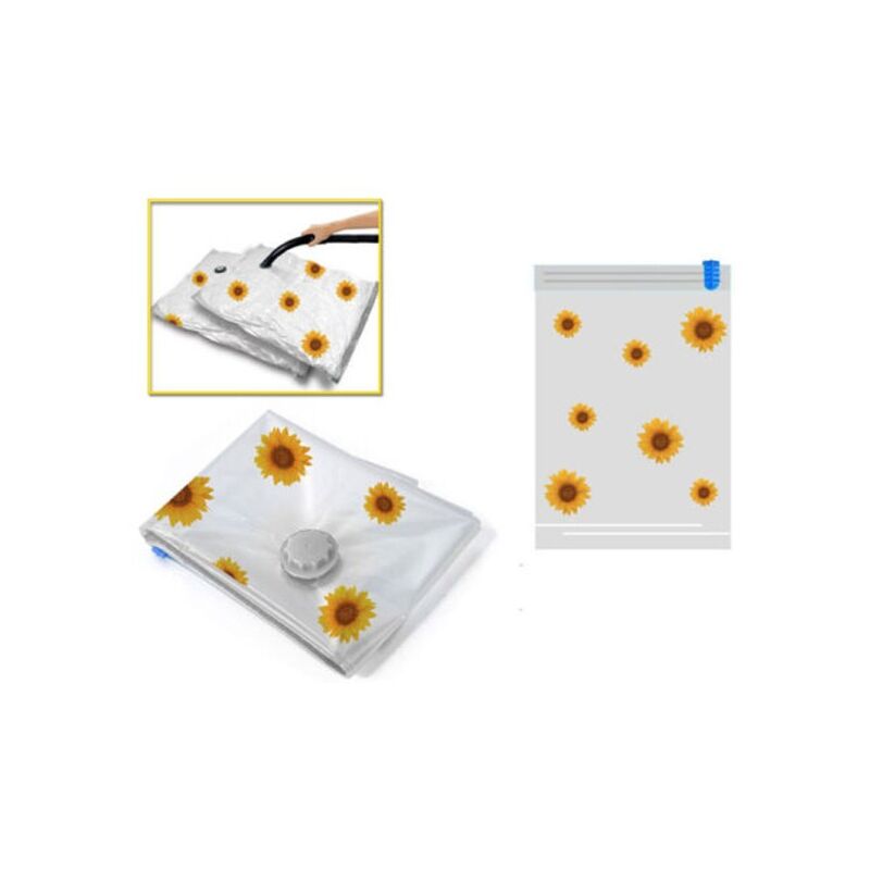 Grazie ai sacchetti sottovuoto puoi riorganizzare e ridurre del 75% lo spazio occupato nell'armadio e nella cabina armadio. Pratiche e veloci, basta semplicemente inserire nelle buste i vostri vestiti, piumoni, lenzuola o il cambio stagione, chiudere la busta ermeticamente grazie alla clip, aprire il coperchio della valvola, aspirare l'aria con l'aspirapolvere e richiudere la valvola. In pochi secondi il volume della busta sarà ridotto e potrete riporla nel vostro armadio. Le buste sono impermeabili e inoltre proteggeranno i vostri indumenti da polvere, umidità, acari e muffe. Caratteristiche:misura 60x80 cmimpermeabiliantipolvere e antiacariLa confezione include:2 buste sottovuoto