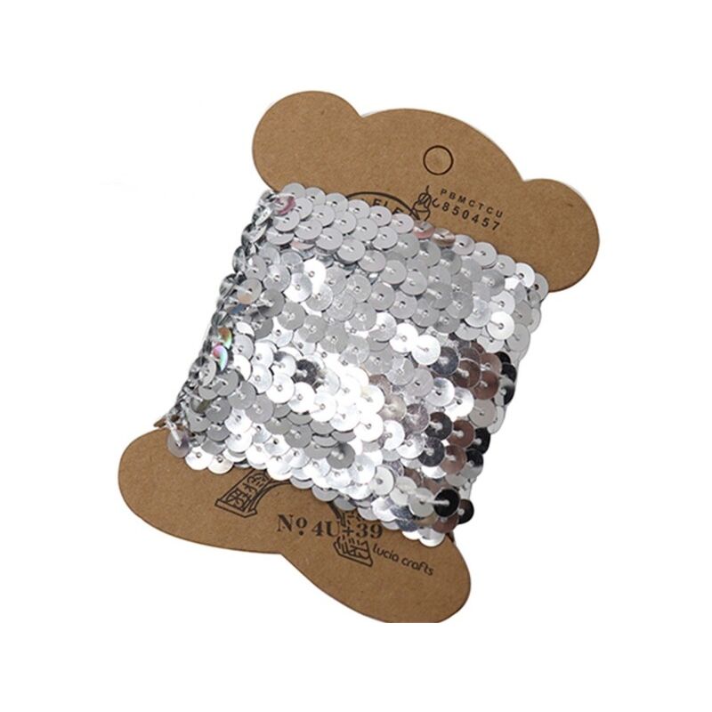 SET 3 PEZZI NASTRO PAILLETTES ARGENTO 3 METRI CC6823 FASCIA GLITTER CUCITO SARTASe stai cercando un modo per aggiungere un tocco di eleganza e glamour ai tuoi progetti di sartoria o artigianato, il nostro Set 3 Pezzi Nastro Paillettes Argento è la scelta ideale. Questo set esclusivo offre non solo un nastro di alta qualità ma anche un tocco di brillantezza grazie alle paillettes argentate. Ecco una panoramica dettagliata di ciò che troverai in questo eccezionale set:Caratteristiche Principali:Design Esclusivo: Il nostro nastro presenta un design unico arricchito dalle paillettes argentate, garantendo un tocco di classe e stile ai tuoi progetti.Qualità Superiore: Realizzato con materiali di alta qualità, questo nastro è resistente e durevole, garantendo una lunga durata e un aspetto impeccabile.Contenuto della Confezione:Nastro Paillettes Argento (3 Metri): Sufficiente per numerosi progetti, questo nastro ti offre la flessibilità di utilizzarlo in diverse creazioni.Perché Scegliere il