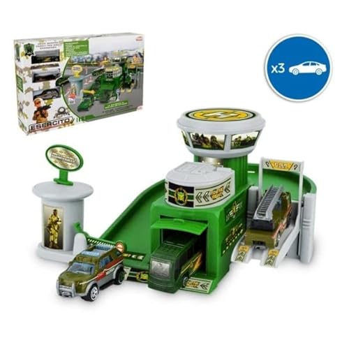 TrAdE Shop Traesio- PLAYSET QUARTIER Generale Militare Garage 3 Auto con Accessori E Adesivi