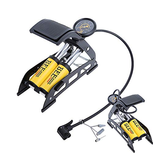 TrAdE Shop Traesio Pompa GONFIATORE A Pedale Doppio Cilindro per Pneumatici Professionale