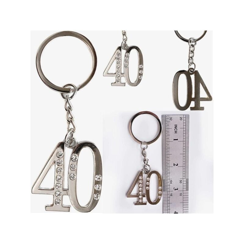 Bomboniera per compleanno, portachiavi in metallo con riportato il numero 40, con l'aggiunta di strass.Il portachiavi misura 4x3,5cm circa (la misura è riferita alla sola parte con il numero)Le bomboniere che proponiamo vengono da noi scelte e proposte in vendita soltanto dopo accurati controlli del grado di rifinitura e dopo attenta valutazione del rapporto qualità/prezzo.