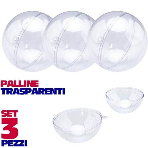 TrAdE Shop Traesio Sfere Natalizie Palline Trasparenti APRIBILI da RIEMPIRE Decorazione Natale 3 PZ