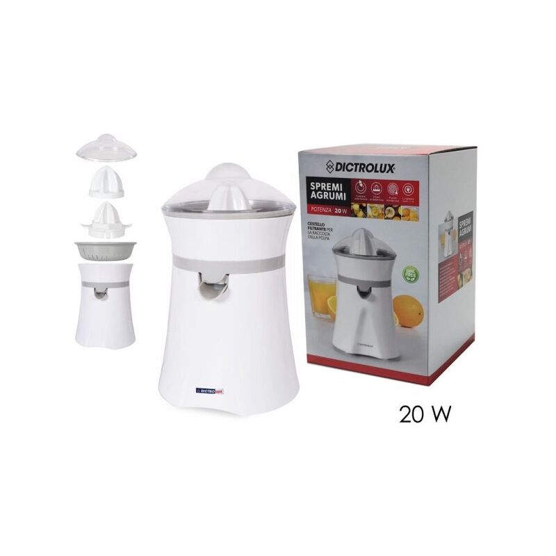 Spremiagrumi 20w con sistema a pressione automatico due testineGrazie allo spremiagrumi, la spremuta diventa un'indispensabile abitudine e prepararne di nuove e sempre diverse sarà facilissimo, grazie alla funzione push&go, inoltre con il selettore di polpa sarà possibile scegliere la consistenza della spremuta.funzione auto-reverse2 coni di spremutacestello filtrantepratico avvolgicavolunghezza cavo 110 cmalimentazione 220-240 v~ 50/60 hz potenza 20 w