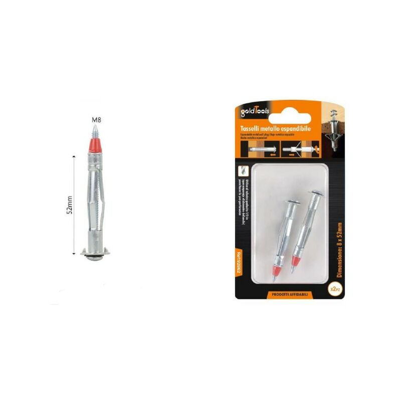 Set 2 Pz Tasselli Metallo Espandibile Viti ad Espansione con Punta 8x52 mm 92862Benvenuto nella pagina del prodotto più innovativo per fissaggi rapidi e sicuri: il Set 2 Pz Tasselli Metallo Espandibile. Se stai cercando la soluzione definitiva per il tuo progetto di montaggio, sei nel posto giusto. Con questo set, garantiamo una posa stabile e affidabile, senza compromessi sulla qualità e sulla resistenza.Caratteristiche Tecniche:Materiale: Realizzati in resistente metallo, questi tasselli assicurano una tenuta sicura e duratura nel tempo.Dimensioni: Con un diametro di 8x52mm, questi tasselli sono perfetti per una vasta gamma di applicazioni.Posizionamento Semplice e Veloce: Grazie al loro design intelligente, l'installazione di questi tasselli è un gioco da ragazzi, risparmiando tempo e fatica.Contenuto della Confezione:2 x Tassello: Ogni set include due robusti tasselli, sufficienti per fissare con sicurezza il tuo progetto.Se vuoi garantire una solida struttura per i tuoi progetti