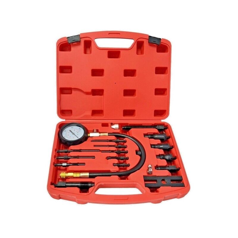 SET 18 PZ TESTER PROFESSIONALE DI COMPRESSIONE PRESSIONE PER MOTORI DIESEL AUTOTester diagniostico per misura e diagnostica della pressione di compressione del motore diesel in automobili e camion. Ideale sia per motori ad iniezione diretta che indiretta. Compressione manometro diesel TDi CDI TD, 17 pezzi.Dettagli tecnici:Manometro: 0-70 bar / 0-1000 psiTubo flessibile lunghezza: 36cmFascetta restringenteIl tutto in una pratica e comoda valigetta per il trasporto.Adattatore per candeletta thread:-M10x 1.0 x83mm-M10x 1.0 x91mm-M10x 1.0 x102mm-M10x 1.0 x113mm-M10x 1.0 x119mm-M10x 1.25 x64mm-M10x 1.25 x135mm-M12x 1.25 x47mm-M22x 1.5 x118mmAdattatore per filetto ugello:-M20x 1.5 x75mm-M22x 1.5 x73mm-M24x 1.5 x88mm-M24x 2.0 x63mm