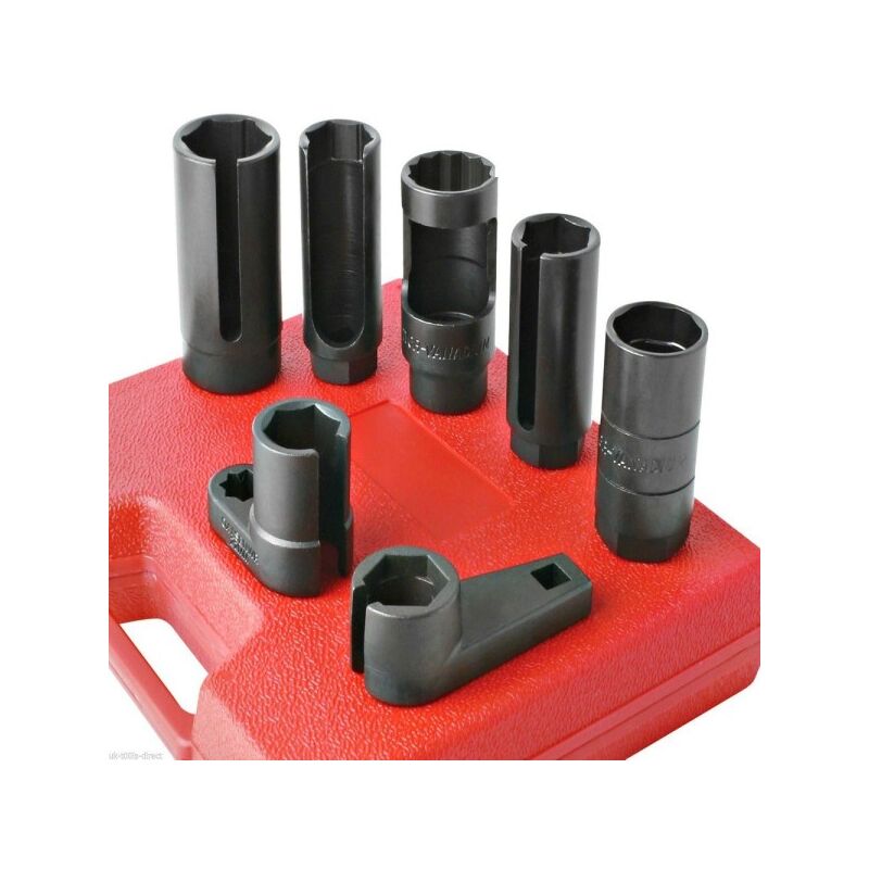 SET 7PZ CHIAVI A BUSSOLA PER SONDA LAMBDA SENSORE OSSIGENO MISURATORE FLUSSOQuesto set di bussole per sensore e unità di invio è utilizzato per la rimozione e l'installazione di sensori di ossigeno, unità di invio della pressione dell'olio e interruttori di vuoto. È adatto all'uso sulla maggior parte dei veicoli grazie alla diverse tipologie e dimensioni fornite. Il set di strumenti può essere utilizzato con chiavi a cricchetto da 3/8 e 1/2 (non incluse).caratteristiche:Numero di elementi: 7Materiale: Lega di acciaio CrvDimensioni guida: 1/2 e 3/81/2 drive x 29 x 90 mmDisco 3/8 x 7/8 x 90 mm ossigeno sensore Socket1/2 drive x 27 x 85mm iniettore SocketDisco 3/8 x 7/8 x 80 mm Vacuostato SocketDisco 3/8 x 1-1/16 x 74 mm olio mittente unità presaDisco 3/8 x 7/8 x 50 mm ossigeno riscaldato sensore Socket3/8 x 7/8 x 30 mm Offset ossigeno sensore chiave