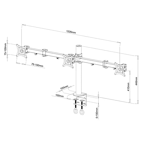 TradeMount Supporto da Tavolo per Tre Display Estraibile a 122,58 cm, per Vesa da VESA 75 x 75 mm a VESA 100 x 100 mm
