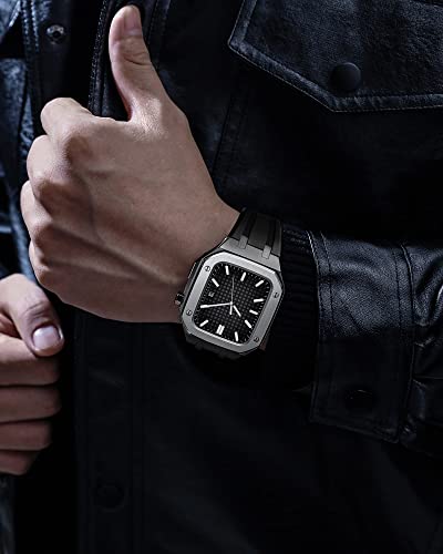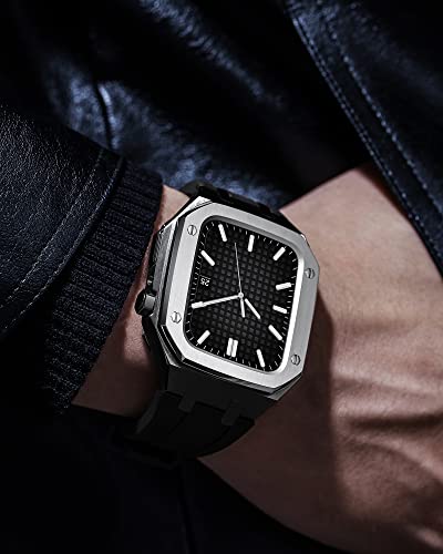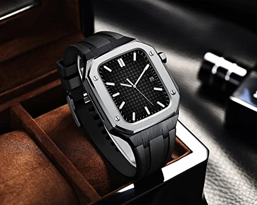 MSF TRADERS Compatibile con Apple Watch 7/6/5/4/SE Cassa in metallo + cinturino in Viton, cinturino in silicone per iWatch serie 45/44mm, cinturini completamente aggiornati per uomini e donne