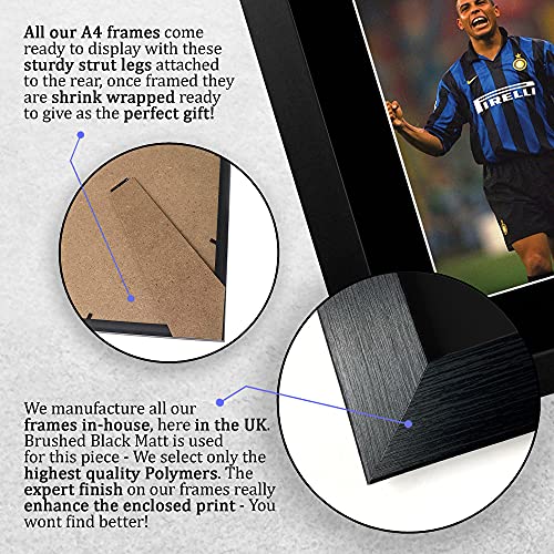 HWC Trading Foto autografata di Ronaldo dell'Inter Milan, formato A4, per fan e tifosi di calcio, con cornice