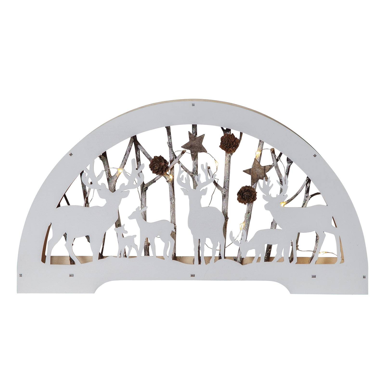 Arco di candele LED a luce soffusa FaunaL'arco di candele LED Fauna diffonde un'atmosfera di luce molto accogliente. Una scena di foresta con cervi, cerbiatti e cerbiatti è stata intagliata in modo elaborato nel legno laccato bianco, che è delicatamente illuminato da LED bianchi caldi.La scelta della posizione di questa attraente decorazione natalizia può essere fatta senza doversi preoccupare di una presa esistente. L'arco di candele è alimentato da due batterie AA. Le batterie non sono incluse nell'arco a candela, ma possono essere acquistate separatamente tramite gli accessori. Dotato di interruttore.
