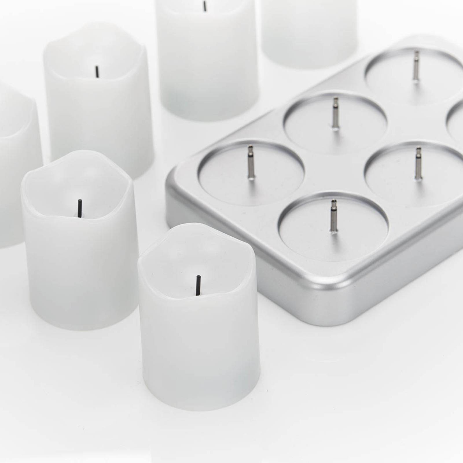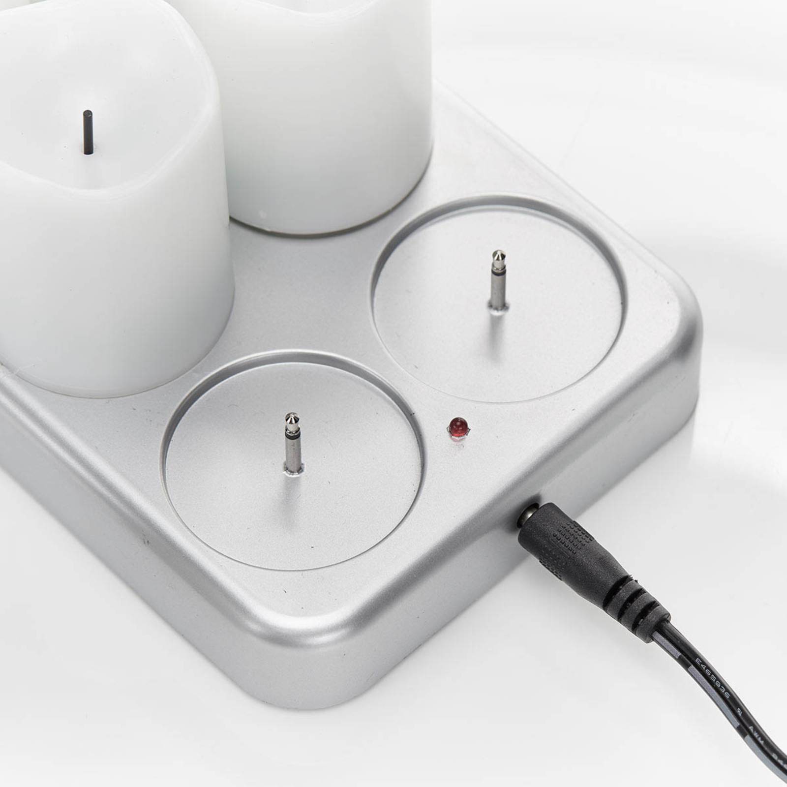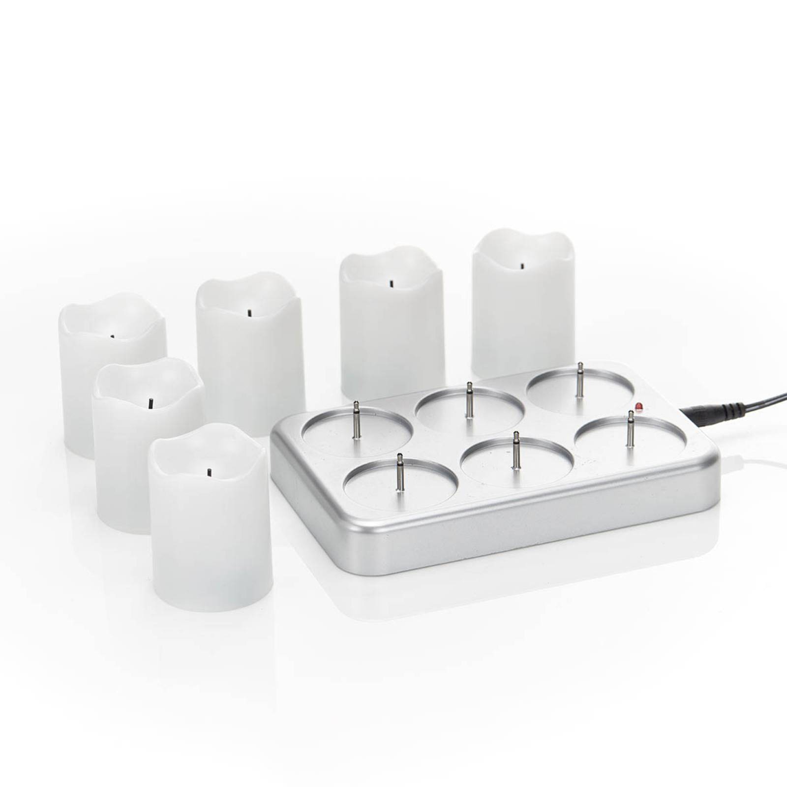 Candela LED Chargeme incl. batteria ricaricabile - set di sei con stazione di ricarica Le candele non sono mai abbastanza: Con questo set Chargeme di sei candele LED bianche, sarete attrezzati per tutte le esigenze di decorazione. Le candele sono dotate di batterie ricaricabili (NiMH). Dopo l'uso, vengono semplicemente appoggiati sulla stazione di ricarica e sono subito pronti per l'uso successivo. Le candele hanno un bordo leggermente irregolare e quindi sembrano molto autentiche. I LED si illuminano di giallo. - Durata della luce con batterie completamente cariche: circa 6 ore